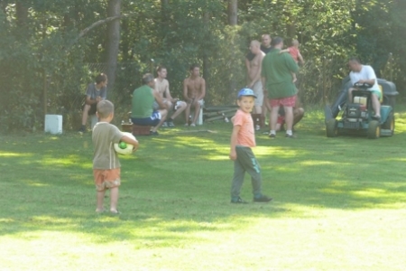 Przez cały rok mieszkańcy dbali również o murawę by była odpowiednio skoszona i nawożona. W koszeniu pomagał nam Krośnicki ZUK, ale w większości wypadków kosiliśmy własnymi kosiarkami.
