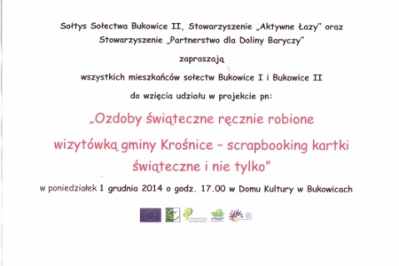1 grudnia - warsztaty - kartki świąteczne metoda scrapbookingu - dla mieszkańców Bukowic przeprowadzą członkinie Stowarzyszenia "Aktywne Łazy"