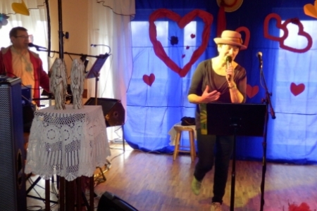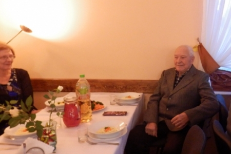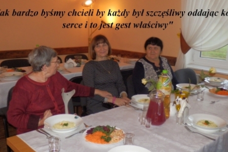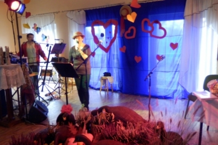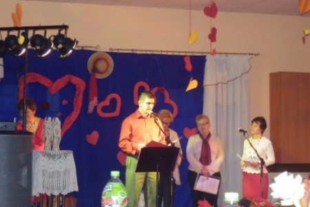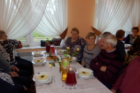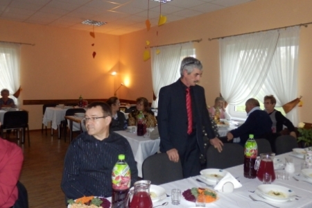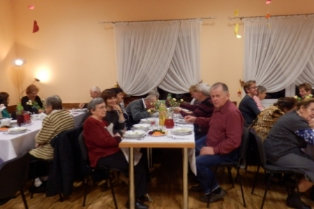 Około 50 osób, z dwóch współpracujących ze sobą wsi, zgromadziło się przy stołach w świetlicy. Zespół „Za ostatni grosz” przygotował na tę uroczystość spektakl słowno – muzyczny traktujący o smutkach i radościach wieku dojrzałego. Zdecydowanie więcej było radości bo „… na razie fruwają motyle, tyle tego tam tego wciąż tyle…” i przecież nie będziemy przejmować się tym, że coś się zapomni, a gdzieś będzie strzykać.