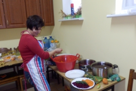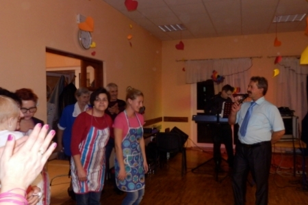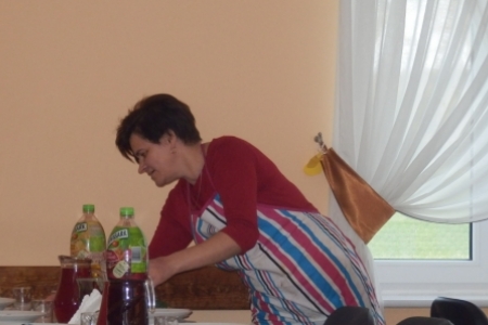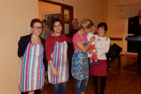 Dania były nie tylko dobre, ale też pięknie przygotowane a wszystko na czas – organizacja lepsza niż w niejednej renomowanej restauracji. No i do tego jeszcze pan Sołtys, który podawał do stołu. Pan Sołtys i Seniorzy podziękowali brawami i śpiewając duchowiankom, przygotowującym obiad, sto lat.