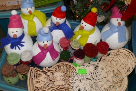 Niedziela, świetlica wiejska a w niej.... cuda i cudeńka przygotowane przez mieszkanki Łaz. Przed godziną 14 pojawili się pierwsi chętni do zakupu pięknych ozdób świątecznych. Czego tam nie było! Stroiki, wianki, anioły duże i małe, bombki robione różnymi technikami, śliczne bałwanki.... tylko zdjęcia mogą oddać bogactwo oferty.