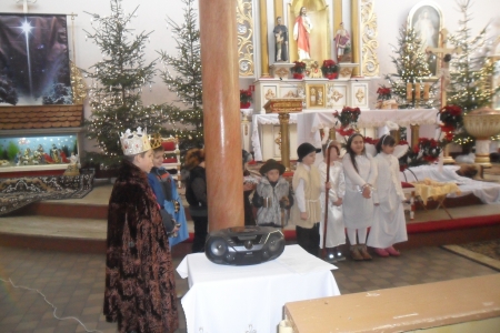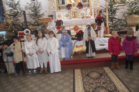 6.01.2015r. w kościele w Pakosławsku dzieci z miejscowej podstawówki przedstawiły Jasełka Bożonarodzeniowe. Występ dzieci został nagrodzony gromkimi brawami, a pani Wujciów obdarowała aktorów słodkościami. Po raz kolejny mogliśmy się przekonać jak utalentowane są dzieci w naszej szkole. Talent wokalny Bartka Rogala i Tobiasza Dopieralskiego, wspaniała dykcja Igora Sabatowicza, wielki zapał twórczy wszystkich dzieci. Gratulujemy rodzicom pomysłów na stroje małych aktorów. Dzieci przygotowali: wychowawczyni klasy I Dorota Rura i Ks. Proboszcz Krzysztof Tomczak.