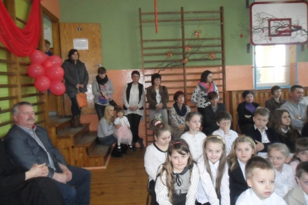 W imieniu Rady Gminy życzenia dla całej społeczności szkolnej złożyła radna Rozalia Kindrat, obdarowując dzieci słodkościami, a na ręce dyrektora Zbigniewa Grzywacza składając bukiet kwiatów.