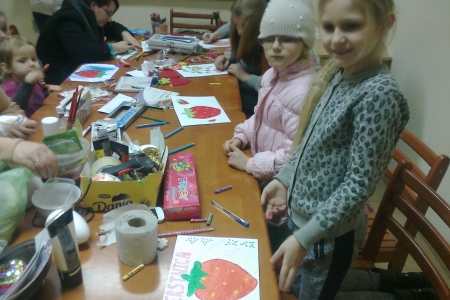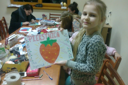 12 stycznia odbyły się warsztaty na świetlicy, podczas których dzieci wykonały obrazki truskawki promującej naszą wieś - Pierstnicę, rysunki zostały wykonane na wesoło i tradycyjnie wszystko zależało od ich wyobraźni. Prace zostaną powieszone wewnątrz świetlicy i będzie można je obejrzeć osobiście.