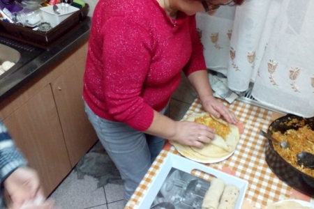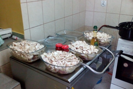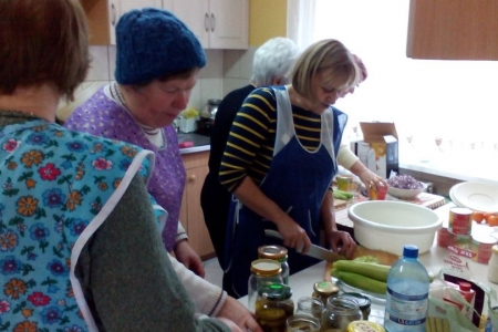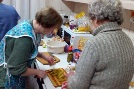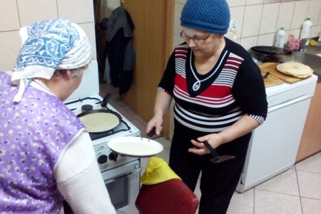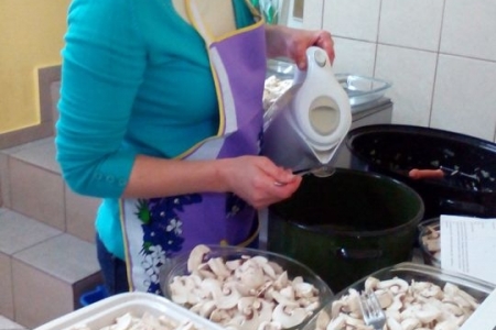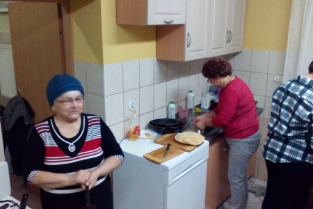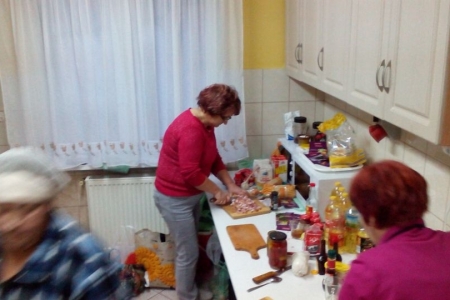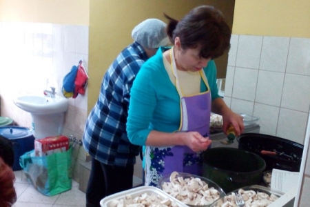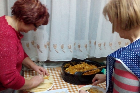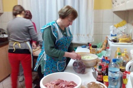 30 stycznia odbyły się pierwsze warsztaty kulinarne w tym roku. Panie miały nie lada wyzwanie - przygotowywały poczęstunek na 100 osób, na wieczorek pokoleniowy. Były zarówno sprawdzone już przepisy jak i zupełnie nowe, bo zasadą jest że ciągle uczymy się czegoś nowego. Był więc barszcz, krokiety z warzywami, karkówka w pieczarkach (nowość której nauczyła nas Danusia Prorok), sałatka królewska z ananasem oraz sałatka z makaronem ryżowym i ogórkiem - również nowość, którą przywiozłam z warsztatów kulinarnych w Bukowicach. Gotowanie było w tym dniu szczególnie przyjemne, ponieważ właśnie w tym dniu dojechały do nas patelnia elektryczna i taboret elektryczny - nowe wyposażenie kuchni, które zakupiliśmy w ramach nagrody za Najaktywniejsze sołectwo w Dolinie Baryczy.