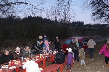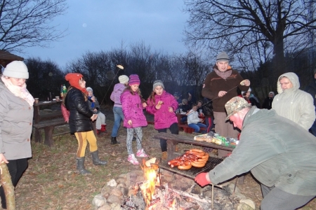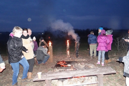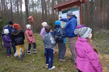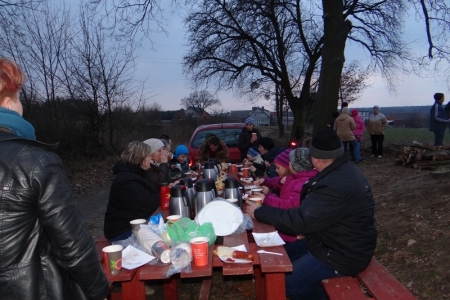 28 luty 2015 został zakończony projekt i została oddana do użytku : "Ścieżka Przyrodniczo - Dydaktyczna w Dziadkowie wsi Leśnych Dziadów". Z tej właśnie uroczystej okazji, zostało zorganizowane przejście Ścieżką, dla wszystkich mieszkańców naszej wsi wraz z dziećmi, po której oprowadzał Marcin Mruk. Nasze pociechy w trakcie trwania marszu, dokarmiały ptaki w ustawionych karmnikach na Ścieżce. Po długim spacerze zwiedzanie Ścieżki, zakończyliśmy przy Kapliczce Świętego Huberta, gdzie przygotowana była główna atrakcja dnia - ognisko. Przy ognisku, wszyscy chętni piekli kiełbaski, które zasponsorowało Stowarzyszenie "Leśne Dziady". Nie zabrakło słodkich wypieków, przygotowanych przez Gospodynie z naszej wsi : Mirosławę Rogosz, Barbarę Kleczewską, Małgorzatę Łuszczyńską i Teresę Przewoźną. Chętnych poczęstowano również ciepła kawą i herbatą. Przy wspólnym stole wszyscy biesiadnicy zasiedli do poczęstunku. Wszyscy świetnie się bawili i miło spędzili czas. Na koniec wieczoru, Prezes Stowarzyszenia Marcin Mruk, oraz Sołtys naszej wsi Aniela Błaszczyńska, podziękowali wszystkim za przybycie, pomoc przy organizacji imprezy i wspólne biesiadowanie.