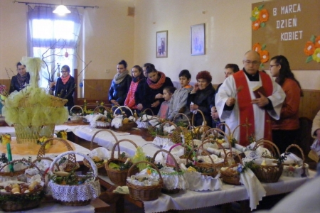 W Wielką sobotę przed południem mieszkańcy sołectwa przynoszą do świetlicy wiejskiej swoje koszyczki z tradycyjnymi potrawami świątecznymi czyli "święconkę".