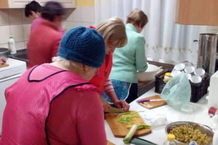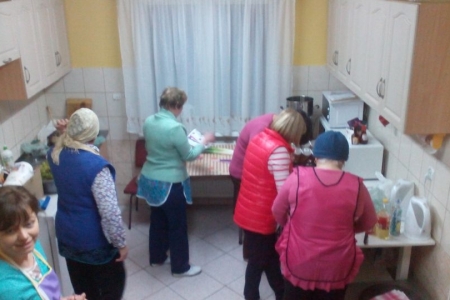 Tradycyjnie, przed Dniem Kobiet, panie spotkały się w piątek w świetlicowej kuchni aby zapewnić sobie konsumpcję na kobiecy wieczór. Stała grupa zaangażowanych kobiet, przygotowywała wymyślone wcześniej potrawy, natomiast panowie z OSP Łazy pod nadzorem Sołtyski oraz kilku innych pań w tym samym czasie przygotowywała salę do imprezy - ustawiano stoły, szykowano dekoracje by wszystko wyglądało perfekcyjnie podczas kobiecego wieczoru.
