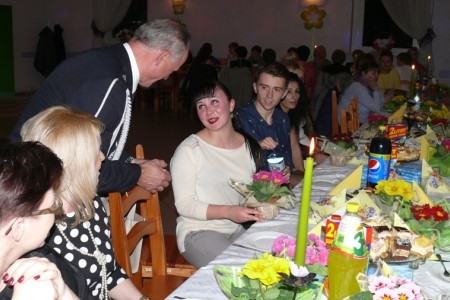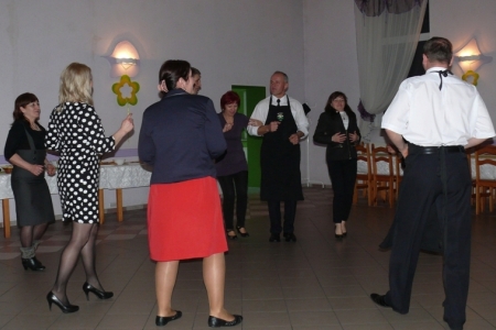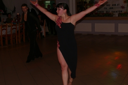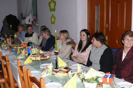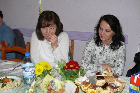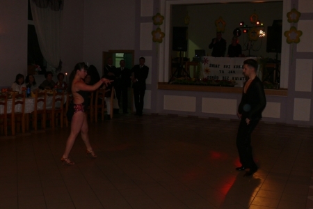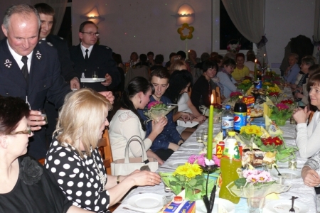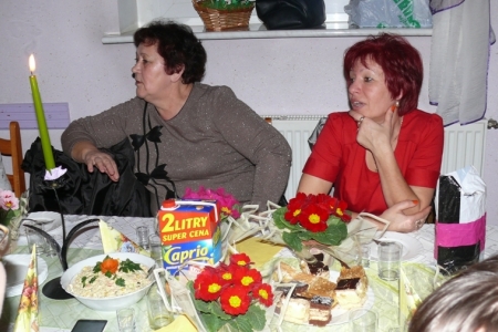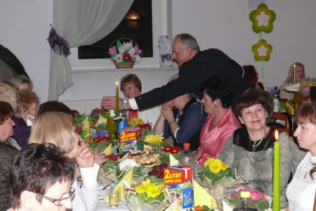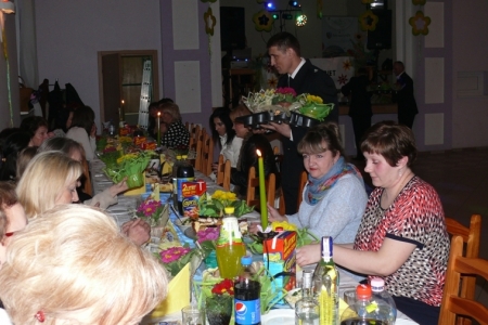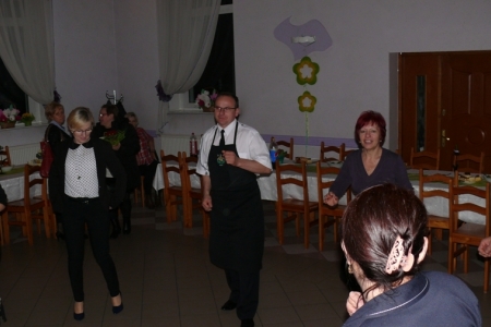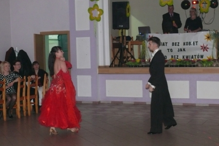 Spotkanie kobiet rozpoczęło się o godzinie 18.00. Panie zasiadły za pięknie przygotowanymi stołami, a panowie z OSP zajęli się obsługą. Imprezę poprowadził DJ Lech, panowie wręczyli wszystkim paniom po pięknej kolorowej prymulce, dzięki którym na naszej świetlicy zrobiło się bajecznie kolorowo. Jako niespodzianka - wystąpiła para tańca towarzyskiego, prezentując przepiękne tańce i wprawiając w zachwyt przybyłe panie. Panie wspaniale się bawiły do północy, tańcząc, spożywając wyśmienite dania i tocząc ciekawe rozmowy w swoim "babskim" towarzystwie.