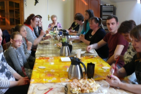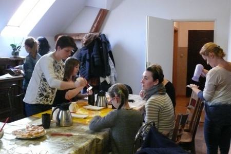 Ciepła i miła atmosfera, kawa, herbata i pyszne ciasto – to dopełnienie warsztatów w Lędzinie.