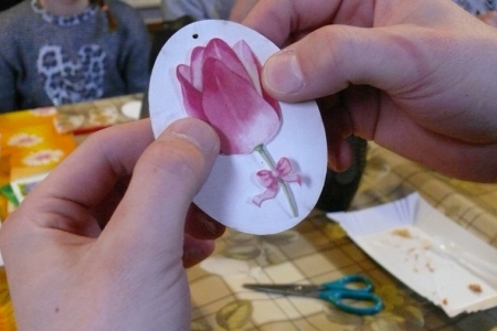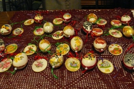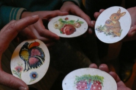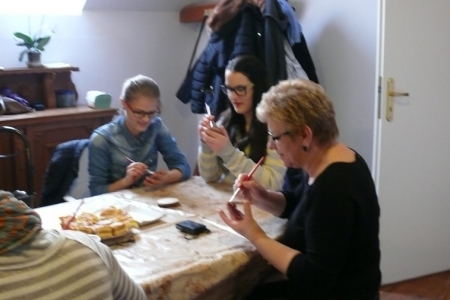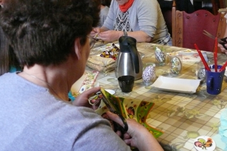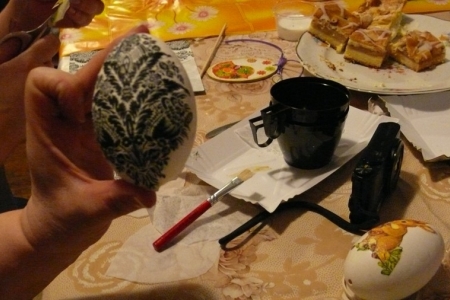 Ponieważ wszystko dzieje się przed Świętami Wielkanocnymi zdobieniom „poddano” drewniane jajka a kiedy Panie opanowały tę łatwiejszą formę zdobienia, trudność zadania bardzo wzrosła.