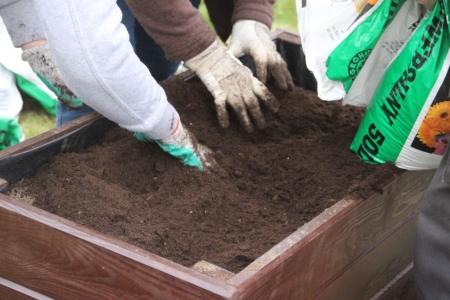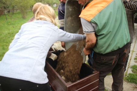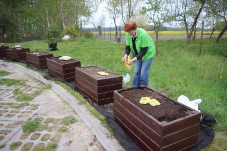 Do skrzyń,wsypano ziemię, z dodatkiem ziemi gruntowej, dedykowanej nowo zasiewanym roślinom. Każda ze skrzyń zaopatrzona zostanie w opisy, informujące o nazwie i rodzaju zasianego zboża czy rośliny. Wszystkie skrzynie zostały też obsypane drobnymi kamieniami.