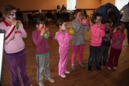 Sołtys J. Nowacki przywitał nasze pociechy i przybyłych rodziców. Oprawę muzyczną i konkursy prowadził Andrzej Linek. Dzieci bardzo chętnie uczestniczyły w licznych konkursach ;dmuchanie balonów ,gorące krzesła , rzutki, śpiewanie i tańczenie. Pani K . Defratyka- Ludwiczak i A. Grocholska malowały chętnym dzieciom twarze. Po licznych atrakcjach na każde dziecko czekała kiełbaska z grila,pączki ,ciasto , napoje i drobne upominki które zostały zakupione dzięki sponsorom naszej wsi; p Sarzyńskim ,Grzempowskim, Kaczorom,Michalakom,Zwierzchowskim,Grocholskim .