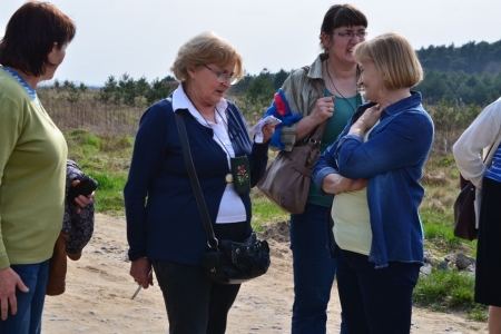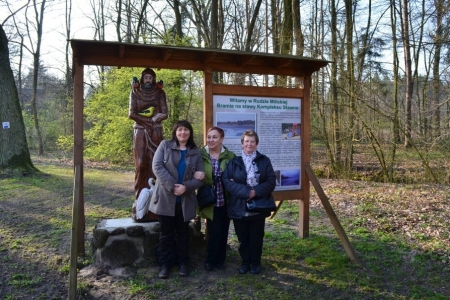 W Rudzie Milickiej zrobiliśmy sobie wspólne zdjęcie przy figurze św. Franciszka a następnie udaliśmy się do wiaty na kawę i ptasie ciasteczka aby wysłuchać opowieści o działalności wsi. Po prezentacji spacerem przeszliśmy na plac rekreacyjny, gdzie oglądaliśmy siłownię zewnętrzną, część osób rozegrała mecz ping - ponga, tworzyliśmy również plakaty "ptaki cudaki".