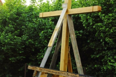 Krzyż został w całości wykonany i zamontowany przez Jerzego Nowackiego. Zatem składamy staropolskie "Bóg zapłać ", za trud pracy nad wykonaniem i zamontowaniem krzyża !
