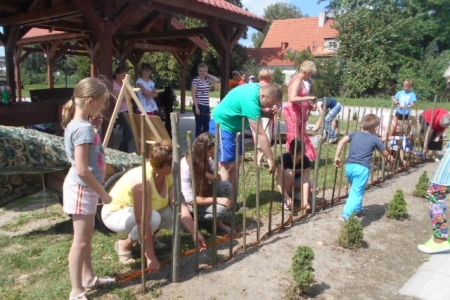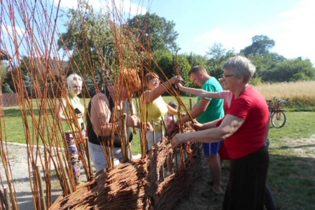 20 lipca w Dziadkowie, odbyły się kolejne warsztaty rękodzielnicze w ramach projektu "Osada Leśnego Dziada". Tym razem tematem warsztatów, było wikliniarstwo, a konkretnie został wypleciony płot z wikliny, za Świetlicą Wiejską przy wiatach. W zajęciach udział wzięli aktywni mieszkańcy naszej wsi z dziećmi, wraz z czynnym udziałem mieszkańców Sołectwa Miłosławice z Panią Sołtys Wsi na czele. Prace na świeżym powietrzu przebiegły sprawnie i w miłej atmosferze, a przygotowany w trakcie zajęć grill, zaspokoił apetyty wszystkich wygłodniałych. Nad przebiegiem prac, czuwał Prezes Stowarzyszenia "Leśne Dziady", Marcin Mruk. Dziękujemy wszystkim mieszkańcom za udział w zajęciach, oraz podziękowania dla Stowarzyszenia "Nad Baryczą" za aktywny udział w naszych warsztatach.