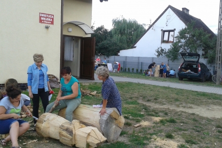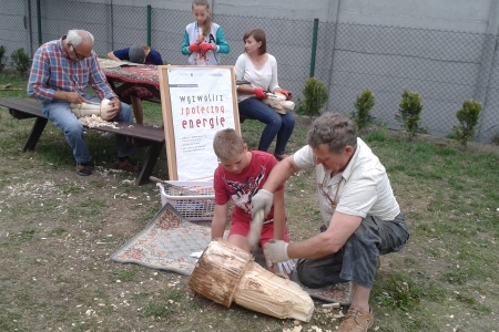 Z powodu mojej choroby nie wrzucałam wiadomości na stronę. Dziś uzupełniam dla tych , którzy chcą być z nami na bieżąco. Warsztaty odbyły się planowo w poniedziałek i środę. Uczestnicy podzieleni na grupy systematycznie uczęszczają na zajęcia. Wszyscy bardzo zaangażowani zresztą jest w co. Powoli z kłody drewna wyłaniają się grzyby jak po deszczu, sowy, ryba orzeł, krasnal, kot, anioł, gitara, ptaki wyłania się baba jaga, żołnierz , koń i inne drobne rzeźby.