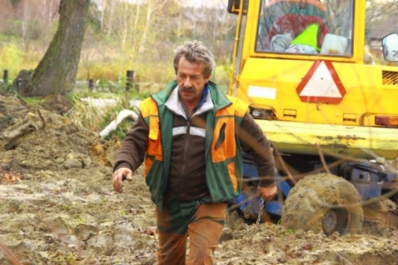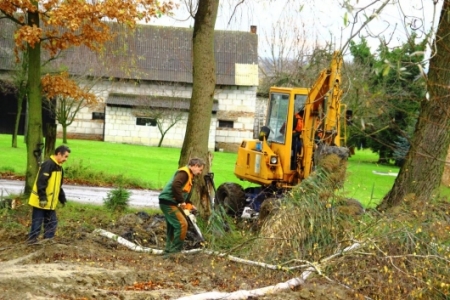 1.Przy pomocy koparki mechanicznej wykopano kilkunastometrowej długości rów, w którym ułożono rurę drenażową, do odprowadzania wody deszczowej z rynien dachu świetlicy.