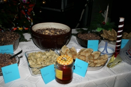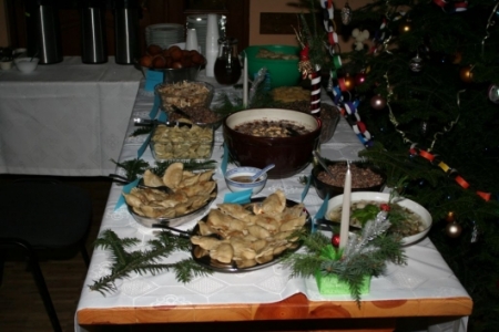 Na koniec odbyło się wspólna degustacja przyniesionych potraw, które przygotowali mieszkańcy Duchowa i Rudy Milickiej. Nie zabrakło żadnej, wymaganej tradycją -potrawy.Były m. innymi; karp, był groch z kapustą, pierogi,maca,kutia,były pączki…ziemniaczane. Było wiele innych potraw i przysmaków, których nie sposób tu wymienić...