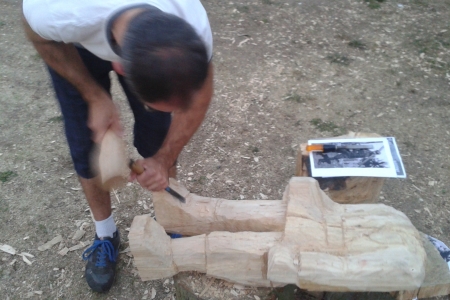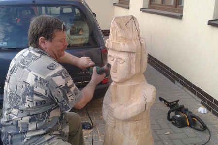 W dniu dzisiejszym oprócz pracy nad swoją rzeźbą, udaliśmy się także z wizytą do pracowni pana Mariana, by podziwiać powstające wielkie dzieło jakim jest figura św. Wojciecha.Oglądaliśmy rzeźby wykonane przez mistrza te pierwsze i te ostatnie. Dostrzegliśmy w nich dużą różnicę i stwierdziliśmy, że praca czyni mistrza. Po powrocie zabraliśmy się do dalszej pracy. Czas biegnie nieubłagalnie . Już za tydzień kończymy nasze zmagania z drewnem.