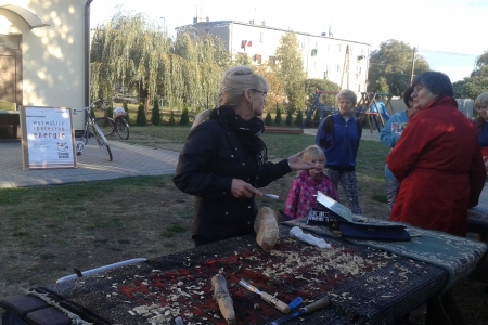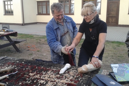 W dniu wczorajszym dla jednej z grup uczestniczących w warsztatach zakończył się projekt Słączno rzeźbą słynie. Uczestnicy po oczyszczeniu swoich rzeźb przystąpili do zabezpieczenia drewna przed szkodnikami a następnie polakierowali swoje rzeźby. Kto nie dokończył może na jutrzejszych warsztatach drugiej grupy uczestniczyć. Oficjalnie w środę 9 września kończymy. podsumowanie projektu zaplanowano na 24 października. Oto krótka fotorelacja z wczorajszych zajęć. Pokażemy także jak powstaje św. Wojciech.
