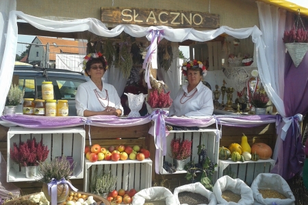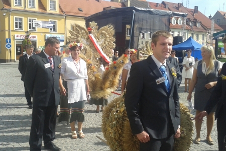 Nasza delegacja uczestniczyła wczoraj w pięknej uroczystości dożynkowej. Braliśmy udział we Mszy świętej, paradnym korowodzie , pokazaliśmy naszą działalność wystawiając się w drewnianym domku, który na konkurs trzeba było ładnie udekorować. Były nasze rzeźby wykonane z projektu Słaczno rzeźbą słynie oraz nasz ludowy artysta pan Marian, prezentowaliśmy puchary i medale zdobyte w locie gołębi pana Darka, zboża i miody rolnika Jarka, a także prace rękodzielnicze z klubu aktywnych kobiet.