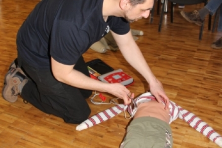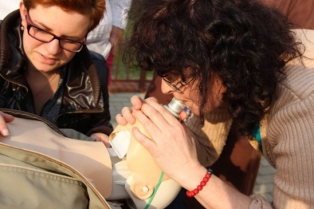 Oprócz wiedzy teoretycznej, szkolenie w większości poświęcone było nabyciu praktycznych umiejętności w zakresie niesienia pomocy w nagłych wypadkach. W trakcie szkolenia było wiele aktywnych ćwiczeń i tzw. symulacji. To ważne. Każdy przypadek jest inny i często zaskakujący.Ważne by umieć potrafić się odpowiednio zachować i odnaleźć w danych okolicznościach oraz nieść skuteczną pierwszą pomoc przedlekarską. Każdy uczestnik mial mozliwość przećwiczenia m. innymi; ułożenia ciała poszkodowanego w pozycji bocznej bezpiecznej, umiejętnośći oceny stanu osoby poszkodowanej, wykonania tzw. masażu serca, obsługi i użycia defibrylatora itd. Natomiast młodzi rodzice z dużą uwagą i zainteresowaniem wsłuchiwali sie w temat dot. postępowania w przypadku zakrztuszeń i zadławień u małych dzieci.
