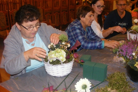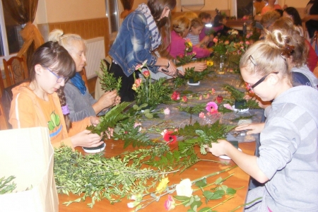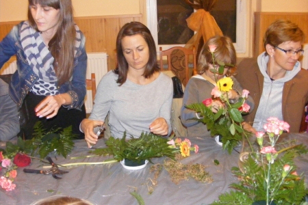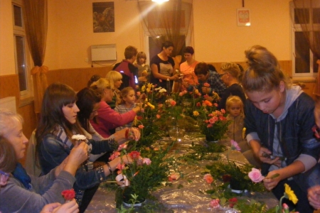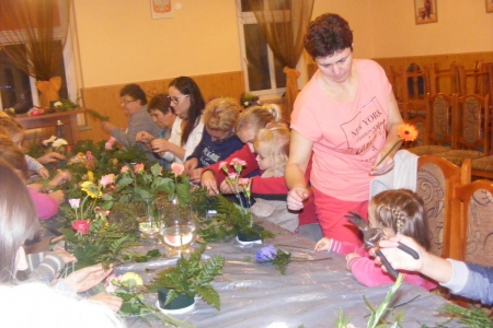 Dzisiaj odbyły się zajęcia z bukieciarstwa, czyli sztuki układania kompozycji kwiatowych z żywych i sztucznych kwiatów. Zajęcia prowadziła p. Ewa Głowacka - właścicielka kwiaciarni z Milicza. Wzięło w nich udział 18 osób, które z wielką pasją podeszło do przygotowanych dla nich zadań. Szczególną radośc wzbudziło układanie kompozycji z żywych kwiatów. Sama przyjemność w październikowy wieczór. Każda uczestniczka zajęć zabrała swoje kompozycje do domu.
