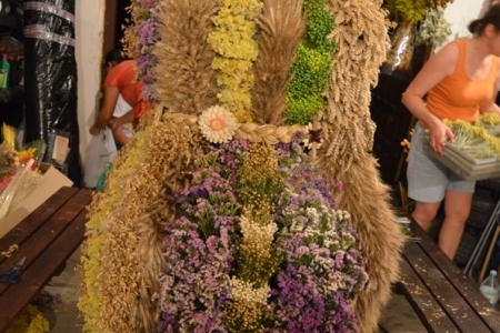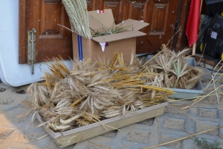 ETAP 3 - gromadzenie materiałów. Zboże już czekało od lipca, przygotowali je panowie Adam Skrzypczyk i Marian Mazik. Kwiaty zebrały panie, resztę zakupił na giełdzie pan Krzysztof Sobczyk.