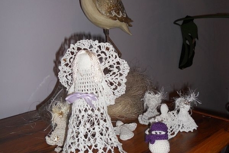 W galerii anioły wykonane na szydełku przez p. Kasię i p. Ewę i frywolitkowe gwiazdki wykonane przez panie prowadzące zajęcia.