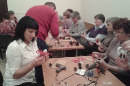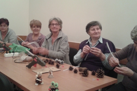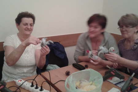 W czwartek 12 listopada w świetlicy miało miejsce spotkanie aktywnych kobiet wraz z przedstawicielami Stowarzyszenia" Leśne Dziady" z Dziadkowa. Po przywitaniu i zapoznaniu się z działalnością Stowarzyszenia przystąpiliśmy do wykonywania zwierzaczków- cudaczków z szyszek, żołędzi, kolorowych piórek . Instruktażu udzielali nam przedstawiciele Stowarzyszenia prezes Marcin z żoną oraz Radek. Każda z uczestniczek wykonała po dwie ozdóbki. Myślimy , że takie spotkania będziemy organizować częściej.