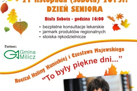 Z okazji Dnia Seniora w sobotę/21 listopada/ odbędzie się koncert Haliny Kunickiej.Wszystkich chętnych zapraszamy do Milicza. Wstęp i przejazd autobusem jest bezpłatny.