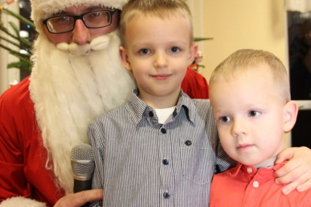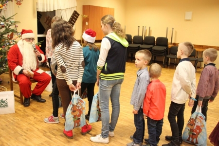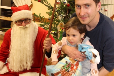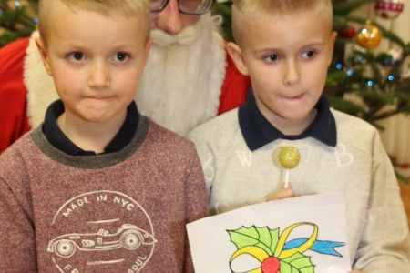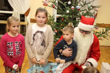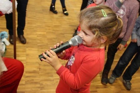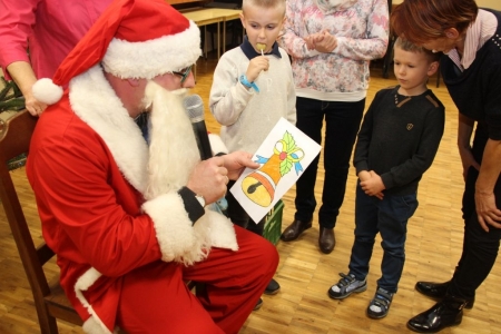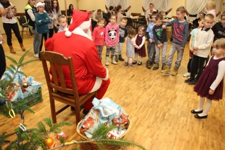 Czas oczekiwania na przybycie Mikołaja dzieci spędziły na wspólnych zabawach. Były zabawy integracyjno-taneczne na parkiecie, gdzie dzieci pod wodzą doświadczonego opiekuna tańczyły i bawiły się. Mimo pewnych oporów w początkowym okresie zabawy, po chwili dzieci zintegrowały się na parkiecie i zabawa zaczęła się na dobre. Później przyszedł czas samodzielnej pracy. Każde z dzieci mogło wykonać samo, lub pod opieką rodzica - prace świąteczną,do wyboru; wykonanie ozdoby choinkowej, kolorowanie rysunków o tematyce świątecznej, ozdabianie styropianowych bombek... Dzieci zostały zaopatrzone w odpowiednie narzędzia typu; kredki,ołówki,flamastry oraz inny asortyment potrzebny do tej pracy. W trakcie całej zabawy panowała radosna atmosfera. W tle leciała dziecięca muzyka świąteczna . W końcu nadszedł czas na spotkanie z prawdziwym Mikołajem.Kiedy Mikołaj pojawił się w sali,serdecznie przywitał się z dziećmi, a następnie zasiadł na przygotowanym specjalnie dla niego krześle.Po chwili każde z dzieci podchodziło do Mikołaja, aby otrzymać od niego paczkę. W osobistym spotkaniu z Mikołajem trzeba było odpowiedzieć na pytania zadawane przez Mikołaja.Najczęściej były to pytania o wiek i imię, czasami o umiejętność zaśpiewania piosenki lub powiedzenia krótkiego wierszyka. Tradycyjnie, nie mogło zabraknąć pytania o to, czy dziecko było grzeczne przez cały rok ? Na szczęście wszystkie dzieci jednomyslnie potwierdzały, że były absolutnie bardzo grzeczne i w pełni zasługuiją na otrzymanie paczki od Mikołaja, co ikołaj czynił z wielką ochotą.Dziękujemy serdecznie MIkołajowi za jego wizytę i obecność. I już teraz zapraszamy do następnych odwiedzin, za... rok !