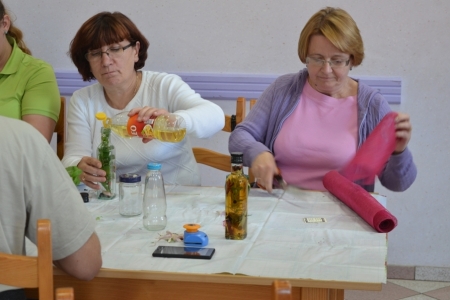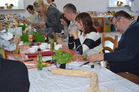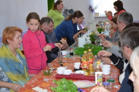 Sołtys Izabela Chaszczewicz opowiedziała o działaniach w naszym sołectwie. Następnie przeprowadziła warsztaty „zioła w zalewie”. Każdy uczestnik zajęć przygotował w butelce zioła z przyprawami zalane olejem lub octem, a następnie wykonał dekorację oraz opisał zawartość butelki i zabrał swoje „dzieło” do domu.