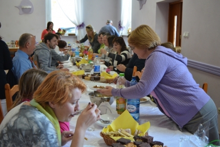 Wymieniono się uwagami i doświadczeniami. Wizyta zakończyła się obiadem, na który tradycyjnie podano zupę gulaszową cioci Halinki oraz paluchy ziołowe.