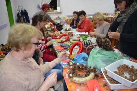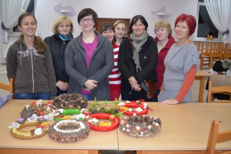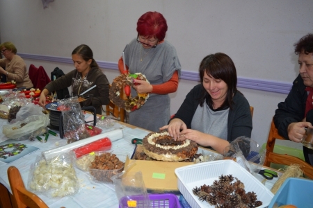 W poniedziałek 9 listopada ponowie spotkały się panie z naszego sołectwa aby wykonać wianki adwentowe lub bożonarodzeniowe. Panie chętnie wzięły się do pracy wyczarowując piękne wianki - były naturalne i bardziej odświętne i kolorowe, każdy inny, piękny... Po skończonej pracy wspólnie wypiłyśmy herbatę i zjadłyśmy ciasto, umawiając się jednocześnie na następne spotkanie w grudniu.