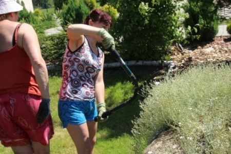 Ponadto, w tym dniu nasze Panie, zrobiły sporo pożytecznego dobra przy zieleni i krzewach rosnących obok placu i przy świetlicy, a Pan Zenek, no cóż, nieformalny opiekun wioskowego boiska, tradycyjnie, z godnym podziwu zaanagażowaniem i zegarmistrzowską precyzją - wykosił nasze boisko, któremu przywrócił ... dywanową jakość !!