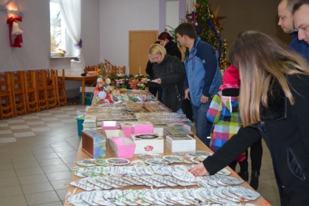 Jak co roku przedstawicielki Stowarzyszenia Aktywne Łazy oraz rada sołecka przygotowali kiermasz świąteczny w świetlicy w Łazach Małych. W tym roku dochód z kiermaszu przeznaczamy na budowę placu zabaw w Łazach. Odwiedziło nas w tym dniu bardzo wielu kupujących - głównie mieszkańców Łaz oraz Bukowic, ale również Wójt Andrzej Biały oraz radni Zdzisław Jasięga i Piotr Kubiak. Na każdego odwiedzającego czekała bezpłatna kawiarenka z kawą i herbatą oraz domowym ciastem upieczonym przez Danutę Prorok i Annę Szcześniak, a także pierniczki, które piekły dzieci w ramach warsztatów.