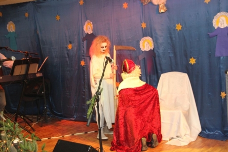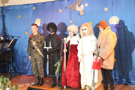Kolejnym etapem Misterium była tzw. Herodiada, czyli występ przygotowany przez młodzież. Sprawne i dynamiczne przedstawienie zawierające wybrane sceny z życia Heroda, z okresu, kiedy Hero dowiaduje się o narodzinach Nowego Króla żydowskiego i co z tego wszystkiego wynikło... Młodzi aktorzy z dużym zaangażowaniem zaprezentowali swoje widwisko. Dużą uwagę zwracała oryginalna charakteryzacja poszczególnych postaci, w którą włożono wiele pracy. Brawo!
