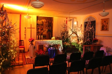 Mszę pasterską o godz. 21-ej odprawił ksiądz Marcin, wikary naszej parafii. W skierowanym do nas słowie nawiązał przede wszystkim do istoty Bożego Narodzenia. Liturgia mszalna podkreślała to niebywałe i niepowtarzalne wydarzenie jakie miało miejsce w dziejach świata, a było nim narodzenie się Jezusa, Boga, w ludzkim ciele... W tym szczególnym czasie nasza kaplica rozbrzmiewała radosnym śpiewaniem polskich kolęd i pastorałek przy muzycznym akompaniamecie i współczenych aranżacjach. Polskie kolędy mają niepowtarzalny urok, dlatego tak je lubimy i kochamy śpiewać.