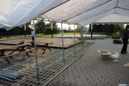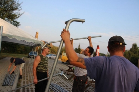 Wykonano już cały szereg prac porządkowych. Rozłożono podłogę, ustawiono ławki, postawiono namioty. Wykonano całe mnóstwo drobnych spraw związanych z organizacją sobotniego Święta.