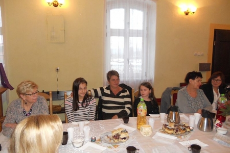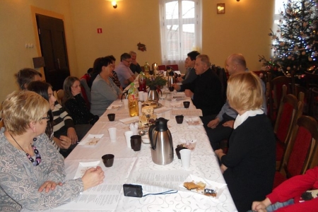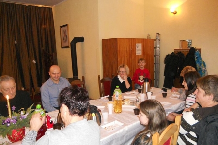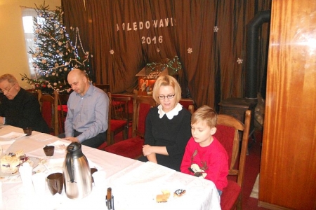 Kolędowanie 2016 zakończone. Dziękujemy wszystkim, którym chciało się wyjść z domów a w szczególności ks. Stasiowi. Oczywiście najważniejszym punktem spotkania było wspólne śpiewanie kolęd. A śpiewaliśmy całe kolędy, niektóre miały blisko 10 zwrotek. Było też coś dla ciała przepyszne ciasta (wypieki p. Ewy, Kasi i Ani), gorąca kawa , herbata i grzaniec. O wystrój stołów, jak zwykle zadbała Kasia. Mamy nadzieję, że w naszej wiosce narodzi się nowa tradycja i w przyszłym roku też się spotkamy. A więc do zobaczenia za rok.