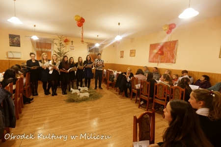 Piękna zimowa sceneria na zewnątrz, przytulne ciepło i zapach siana z zaaranżowanej betlejemskiej stajenki, chętni do wspólnego śpiewania ,to czynniki, które zagwarantowały wspaniałą , radosną atmosferę kolędniczego spotkania w Potaszni. Rozpoczęli je uczniowie Publicznego Gimnazjum we Wróblińcu , którzy pod kierunkiem nauczycieli : A.Miszkiewicz, J.Karbowiak i M. Wysockiej przygotowali bardzo refleksyjną inscenizację na temat współczesnego postrzegania Świąt Bożego Narodzenia .Całość przeplatana pięknymi kolędami i pastorałkami. W drugiej części spotkania zespół wokalny działający w Ośrodku Kultury w Miliczu, przy akompaniamencie J. Janczury i dyr. P. Leśko „porwał” dosłownie publiczność do wspólnego śpiewu. Rozbrzmiewały znane polskie kolędy , niektóre w bardzo w ciekawych aranżacjach, co bardzo podobało się zgromadzonym. Śpiewane na przemian zwrotki ,raz przez zespól , raz przez publiczność, szczególnie młodzież , stworzyły niezapomniany klimat tego trwającego blisko 2 godziny zimowego koncertu.Organizatorzy dziękują wszystkim wykonawcom, uczestnikom i mieszkańcom, którzy pomogli w przygotowaniu tego spotkania.Za upieczone ciasta: A. Więcek, D. Kwaśniewskiej,Duczmal,G. Rajkiewicz.Za pomoc w przygotowaniu poczęstunku:Z. Bieleckiej, A.Chrust i G. Rajkiewicz.Za przygotowanie i dekoracje sali:K.Jakubowskiej, G.Rajkiewicz,A.Drozdowskiej.