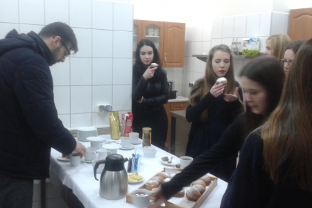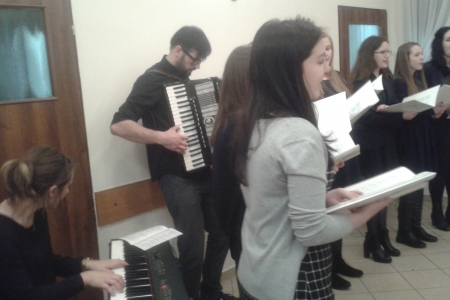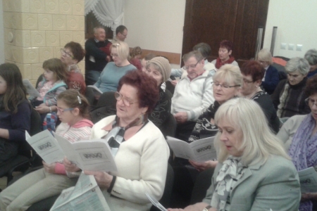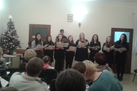 Wspólne kolędowanie rozpoczęliśmy od zaśpiewania kolędy Wśród nocnej ciszy. W skupieniu słuchaliśmy kolęd w wykonaniu artystów, mogliśmy pośpiewać przy akompaniamencie akordeonu i pianina. Odważne panie śpiewały solówki (po jednej zwrotce) Spotkanie zaliczamy do udanych i z niecierpliwością czekamy na następny rok.