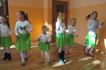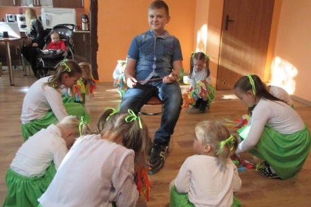 Uczestnicy warsztatów śpiewali, tańczyli oraz prezentowali swoje umiejętności teatralne. Po występie wszyscy mieszkańcy zostali zaproszeni na pieczenie kiełbasek oraz słodki poczęstunek.