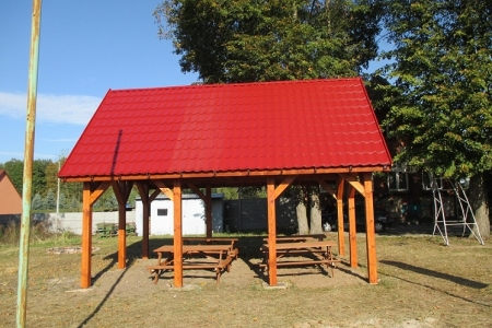Właśnie zostały zakończone prace przy budowie wiaty oraz ławostołach przy śwetlicy wiejskiej w Łąkach.