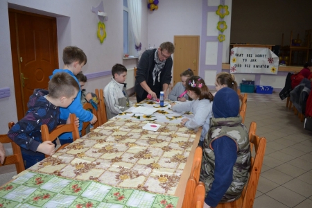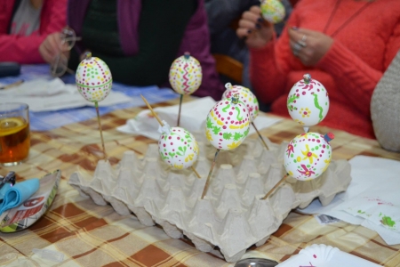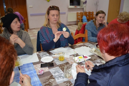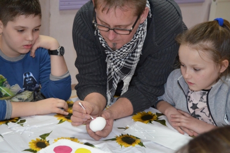Szczególne miejsce w pracach pana Ryszarda zajmują Wiszeńskie Pisanki i właśnie takie pisanki pan Ryszard uczył wczoraj malować uczestników naszych warsztatów. Warsztaty były zarówno dla dzieci jak i dorosłych. Dzieci uczyły się jak zwykłą bagietką do uszu można wyczarować różne wzory, natomiast dorośli mieli już trochę trudniejsze zadanie. Efektem były piękne, kolorowe pisanki, które udekorują nasze stoły wielkanocne. Oprócz tego Pan Ryszard udzielił szeregu ciekawych rad odnośnie malowania pisanek różnymi metodami. Już wczoraj wstępnie umówiliśmy się na kolejne spotkanie...