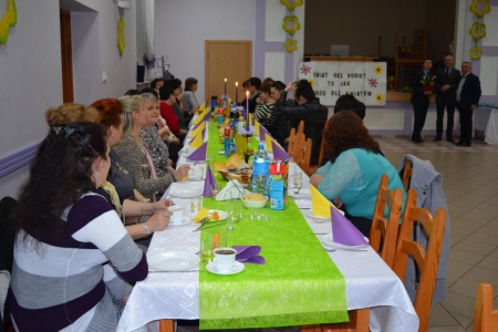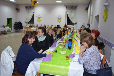 W sobotę 45 pań mieszkanek sołectwa Łazy mile obchodziło Dzień Kobiet w świetlicy wiejskiej. Na początku imprezy panie miały trzech gości Pana Andrzeja Białego Wójta Gminy Krośnice, Radnego Pana Jacka Skrzypczyka oraz Członka Rady Sołeckiej Pana Krzysztofa Domagałę. Panowie przybyli z kwiatami i szampanem. Specjalny bukiet kwiatów Pan Wójt wręczył "najmłodszej" uczestniczce pani Sabinie Jamrozik, wszystkie panie natomiast otrzymały po róży. Po tej krótkiej wizycie (Pan Wójt pospieszył do innych sołectw), sala należała już tylko do pań...