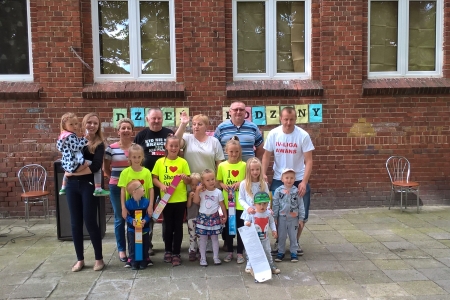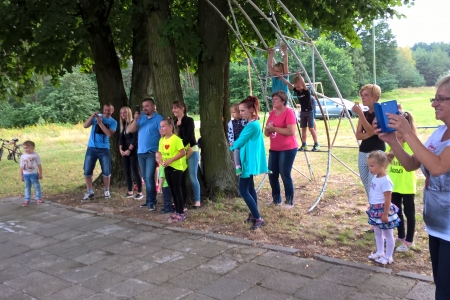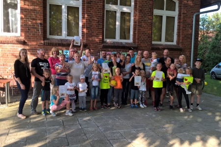 Następnie sześć zgłoszonych drużyn wzięło udział w Potyczkach rodzinnych, tj. czterech konkurencjach sprawnościowych (strzał na bramkę, slalom z balonem, sztafeta z piłeczką pingpongową oraz rodzinne przeciąganie liny). Każda z drużyn o...trzymała "Dyplom Super Rodziny"!