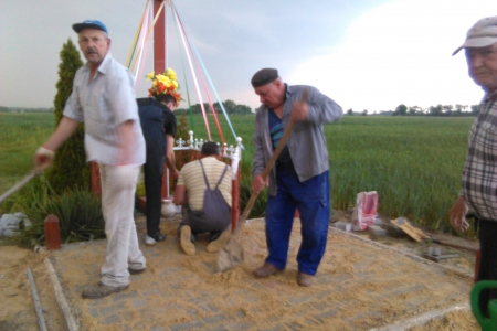 Kilka dni trwało uporządkowanie terenu za remizą, ułożenie kostki pod zadaszeniem oraz utwardzenie i położenie kostki przy krzyżu przydrożnym.